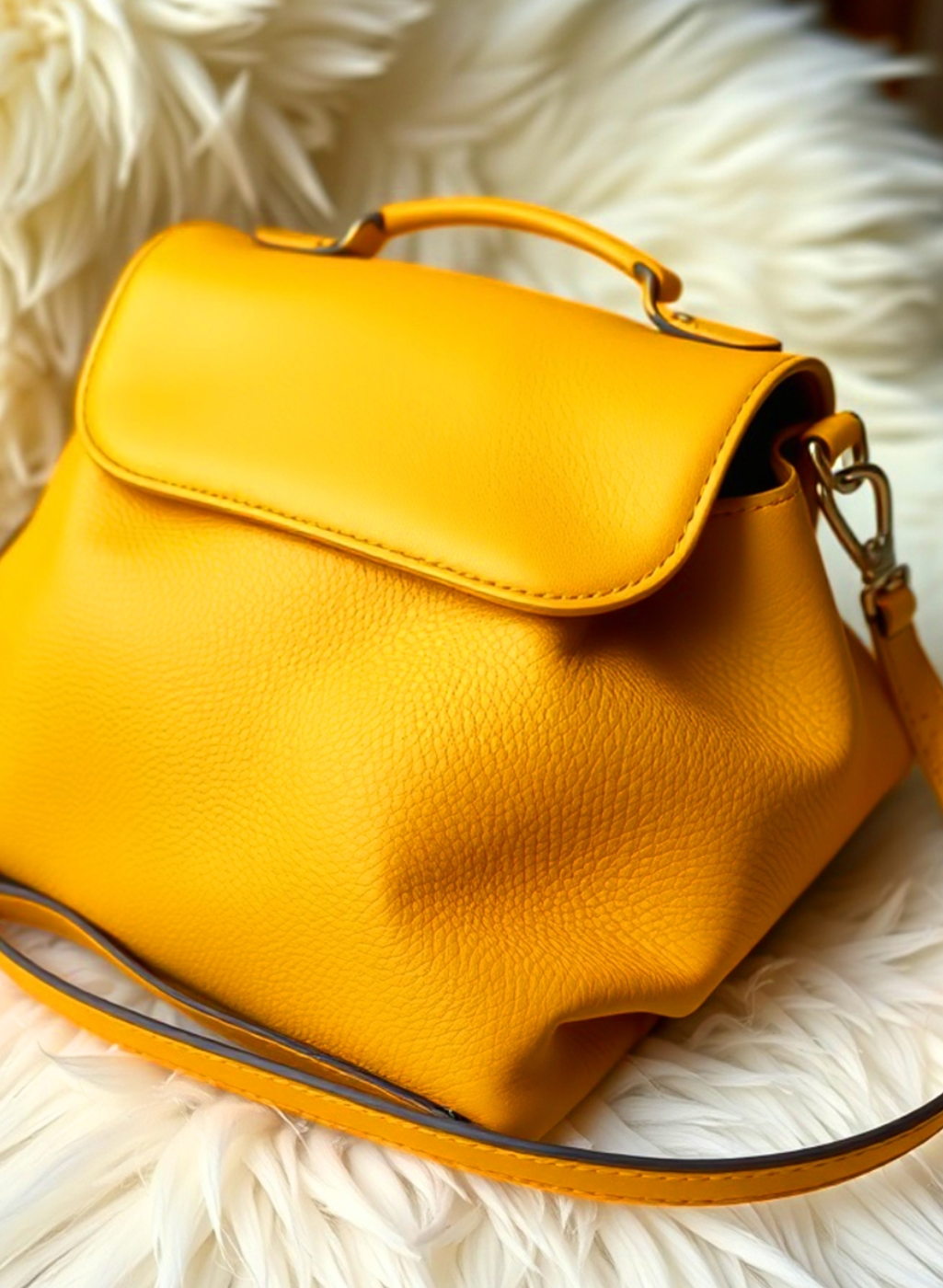 Every day is an occasion when you are carrying the right bag. The Goldie Flap Dash does not wait for the ideal moment; it creates one. Bold mustard yellow that cuts through any crowd, a cheerful flip clasp, and an energy that turns even an ordinary Sunday into something worth remembering. Go anywhere. Look good doing it.