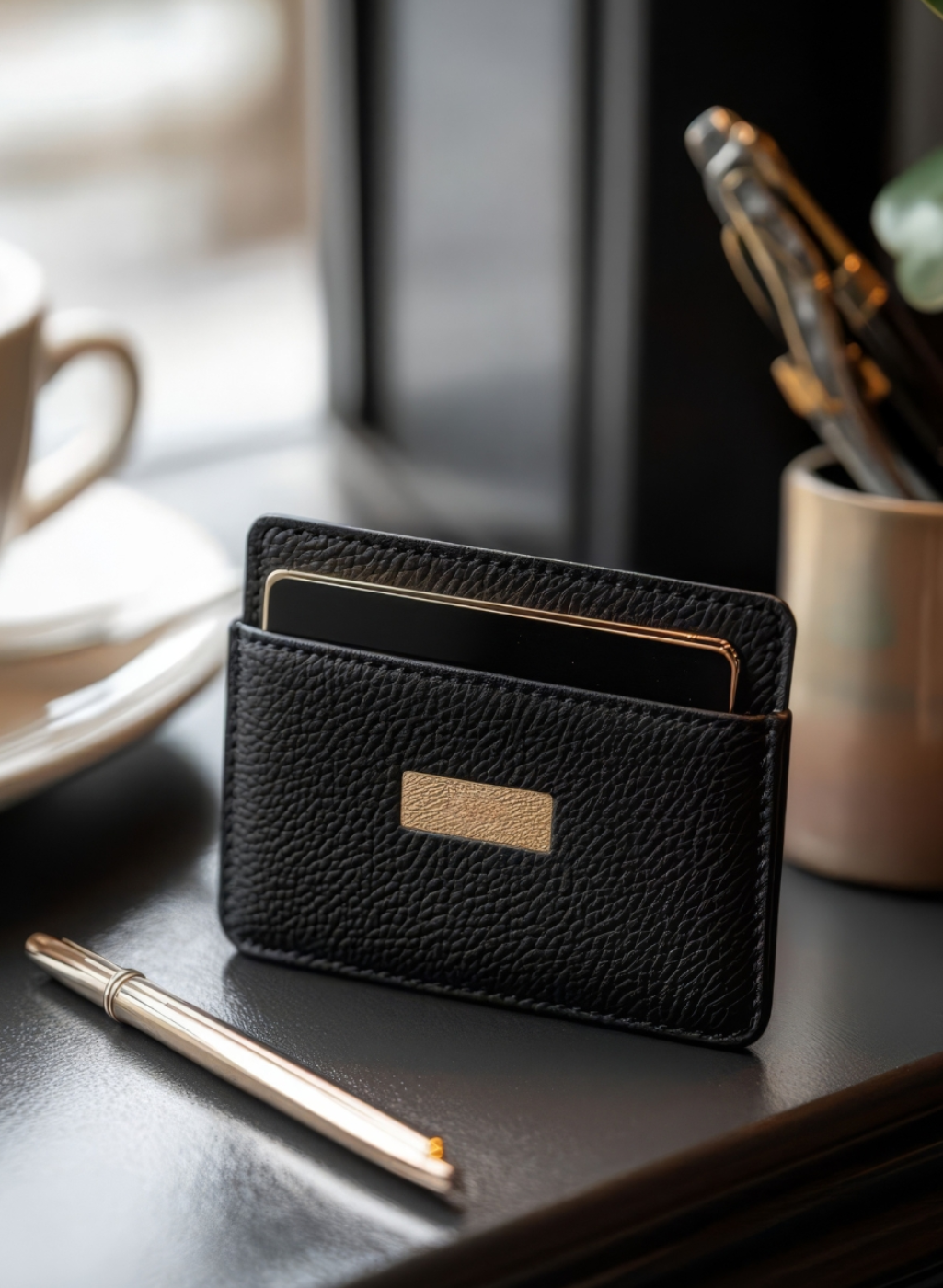 The smallest details make the loudest statements. The Noir Sleek Slip is for the person who edits their life with intention; keeping only what matters and carrying it beautifully. Black pebbled leather, a centered gold bar accent, and a slim profile that slides anywhere effortlessly. Nothing excessive. Nothing missing. Just quiet, confident precision that people notice without knowing exactly why.